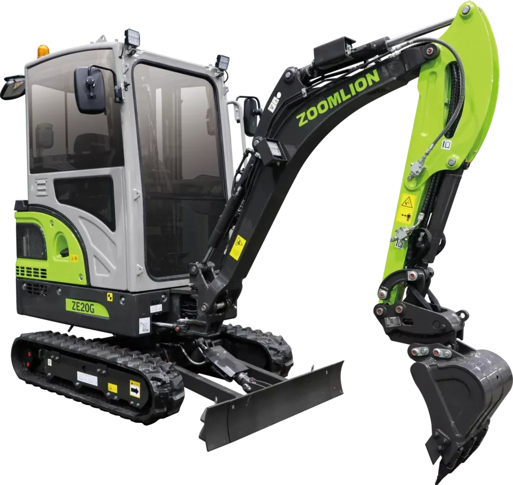 Zoomlion ZE20G to kompaktowa minikoparka o masie 2 ton, stworzona z myślą o pracy w ciasnych przestrzeniach.