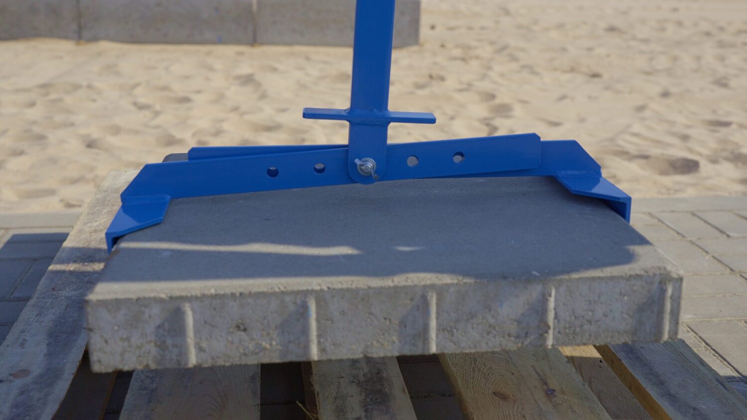 Chwytak do koryt ściekowych JAZON CHK z wygodnym uchem – służy do przenoszenia i ustawiania koryt ściekowych oraz płyt chodnikowych przy czym łatwo można go transportować i składować.