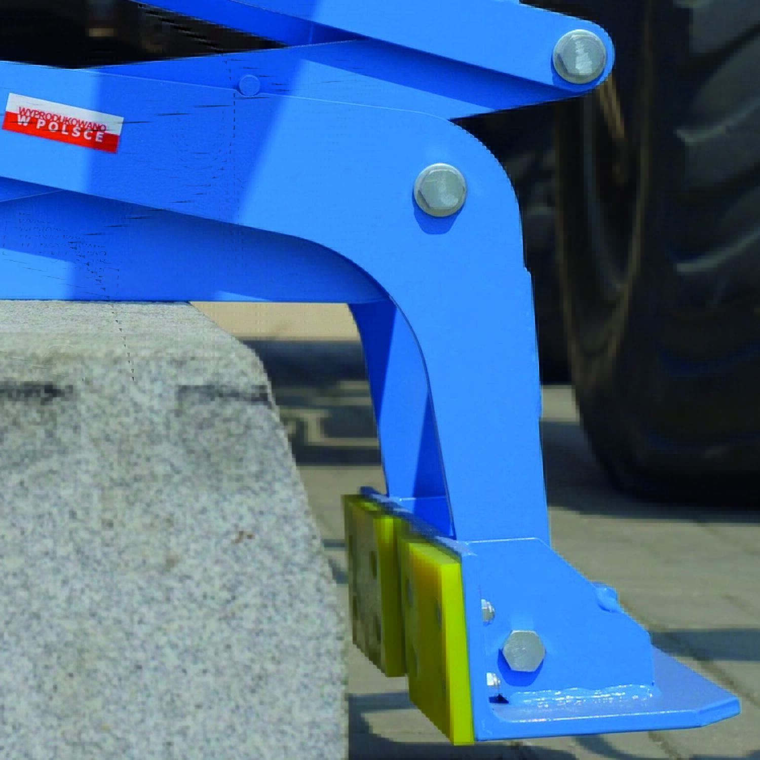 - Gumowe poduszki chwytaka CHPZ500 zapewniają bezpieczne przenoszenie i układanie krawężników oraz obrzeży, minimalizując ryzyko uszkodzeń podnoszonego elementu i zwiększając efektywność prac brukarskich.