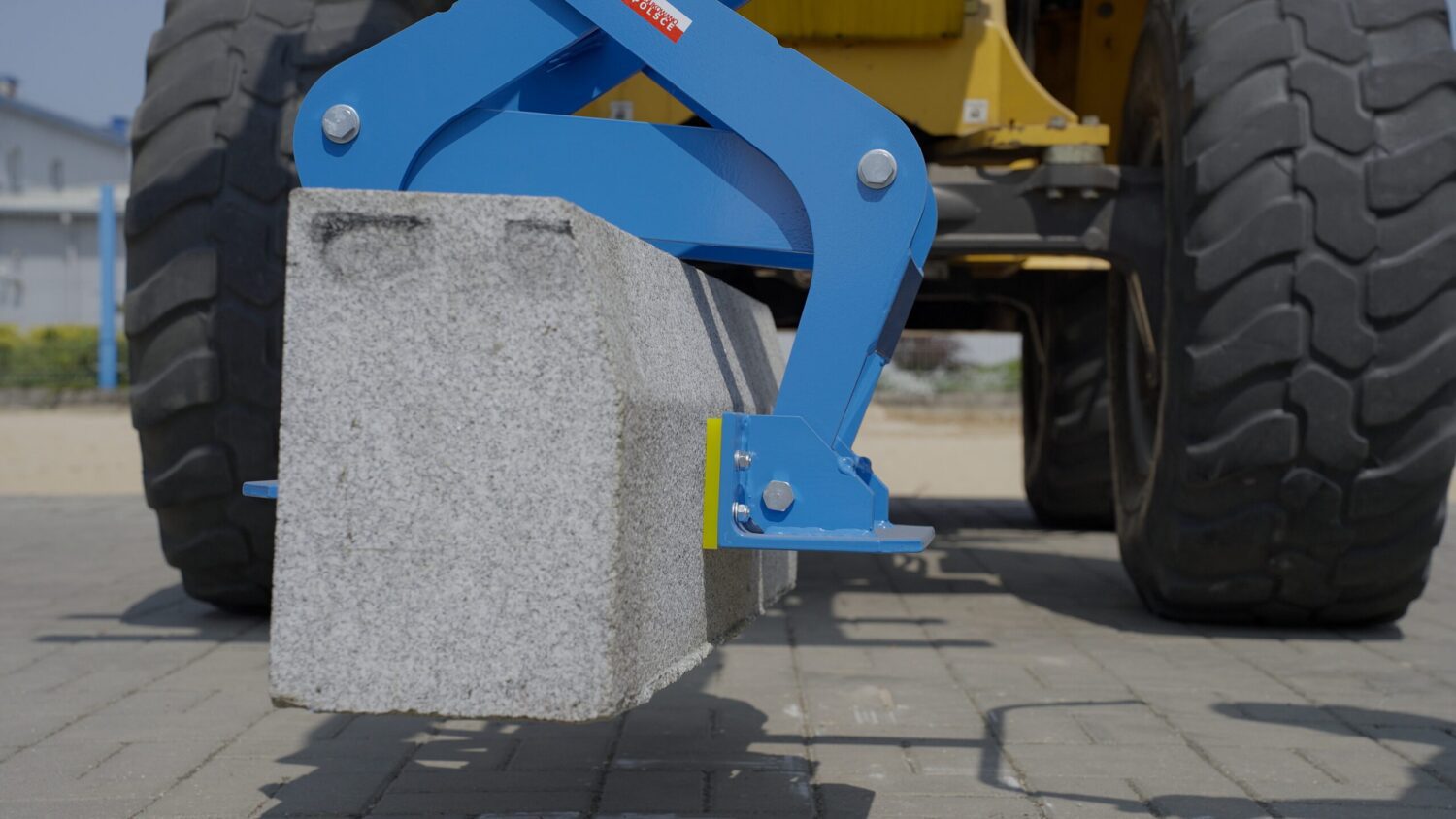 - Gumowe poduszki chwytaka CHPZ500s zapewniają bezpieczne przenoszenie i układanie krawężników oraz obrzeży, minimalizując ryzyko uszkodzeń podnoszonego elementu i zwiększając efektywność prac brukarskich.