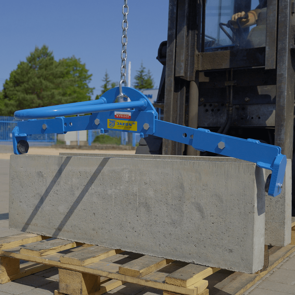 Chwytak wzdłużny zawieszany obniżony CHWZO to profesjonalne narzędzie, zaprojektowane z myślą o efektywnym przenoszeniu i ustawianiu krawężników oraz obrzeży chodnikowych. Dzięki solidnej konstrukcji, specjalnie zaprojektowanemu systemowi mechanicznego chwytania i elastycznej regulacji, CHWZO zapewnia precyzyjne i bezpieczne wykonywanie prac brukarskich.