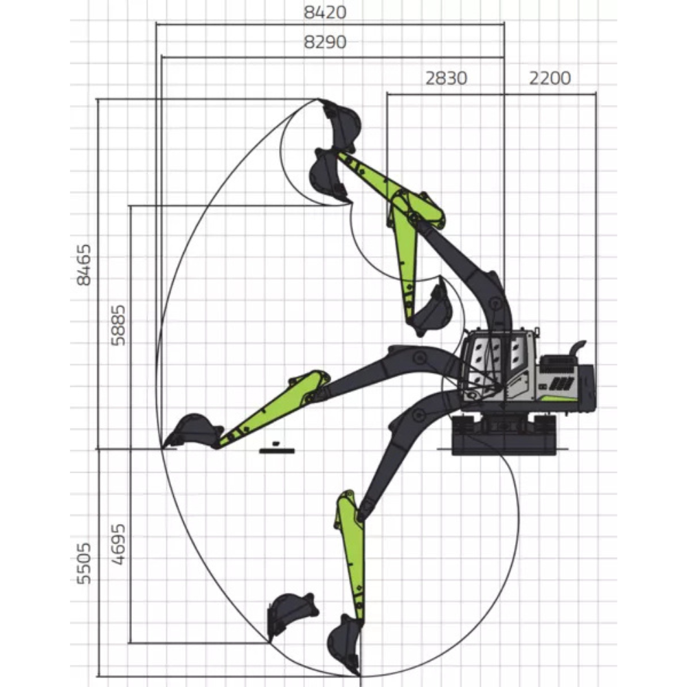 Zasięg kopania (maks. / na gruncie) 8420 mm / 8290 mm