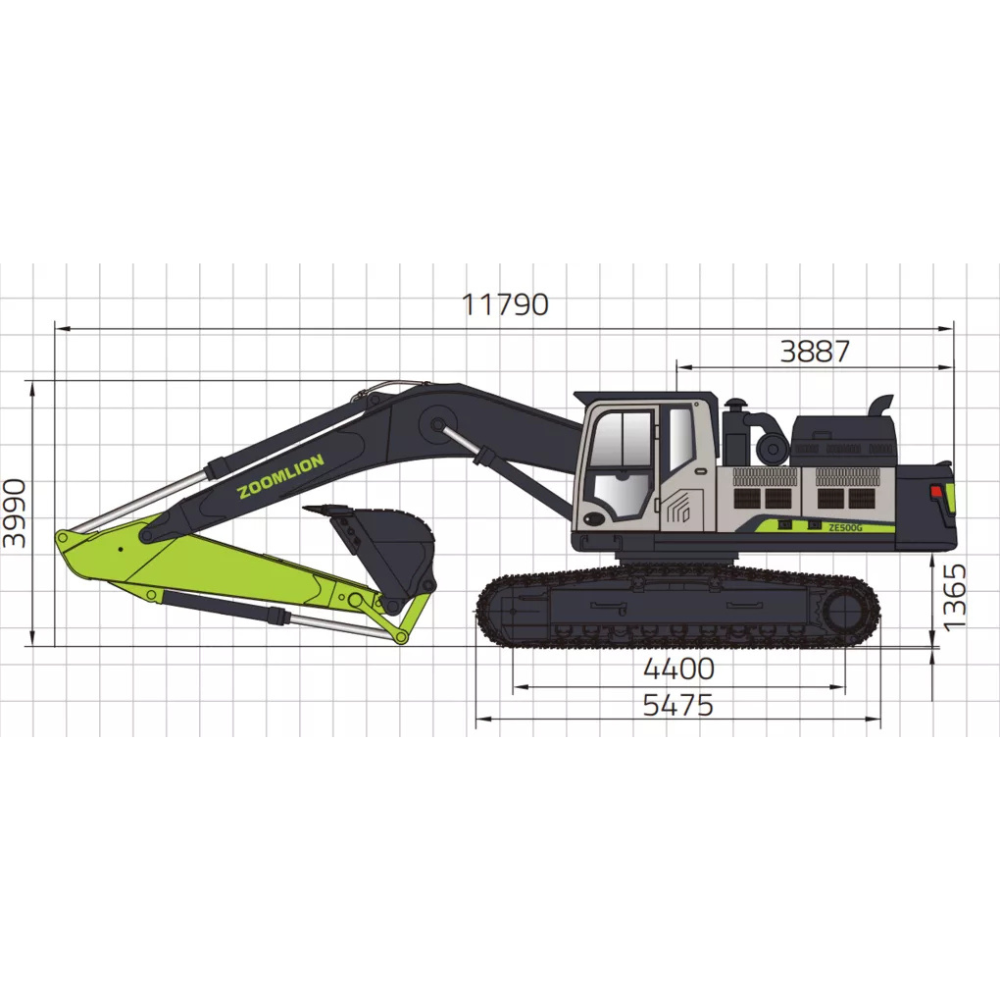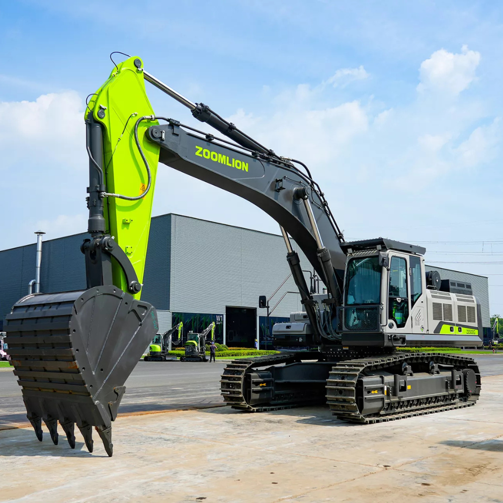Koparka gąsienicowa Zoomlion ZE500G to wydajna maszyna klasy ciężkiej, stworzona z myślą o intensywnej pracy na dużych placach budowy, w kopalniach oraz przy masowym przemieszczaniu urobku. Dzięki operacyjnej masie 51 000 kg, dużej pojemności łyżki (do 3,3 m³) oraz ogromnej sile kopania, model ten jest gotowy do najcięższych zadań.