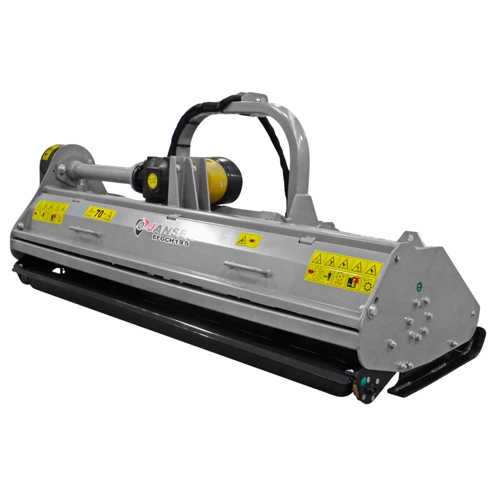 Kosiarka bijakowa Jansen EFGCH-195 z hydraulicznym przesuwem bocznym to wydajne narzędzie do pracy w rolnictwie, usługach komunalnych i utrzymaniu terenów zielonych. Wyposażona w 28 hartowanych młotków (0,8 kg) oraz wzmocnioną przekładnię kątową zapewnia niezawodne i efektywne koszenie nawet w trudnych warunkach.