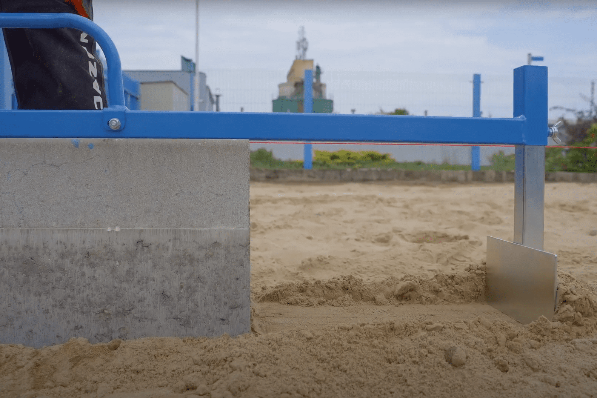 Krawężnikowy ściągacz podbudowy JAZON JLW – do profesjonalnego wyrównywania podbudowy przed kolejno ustawionymi krawężnikami.