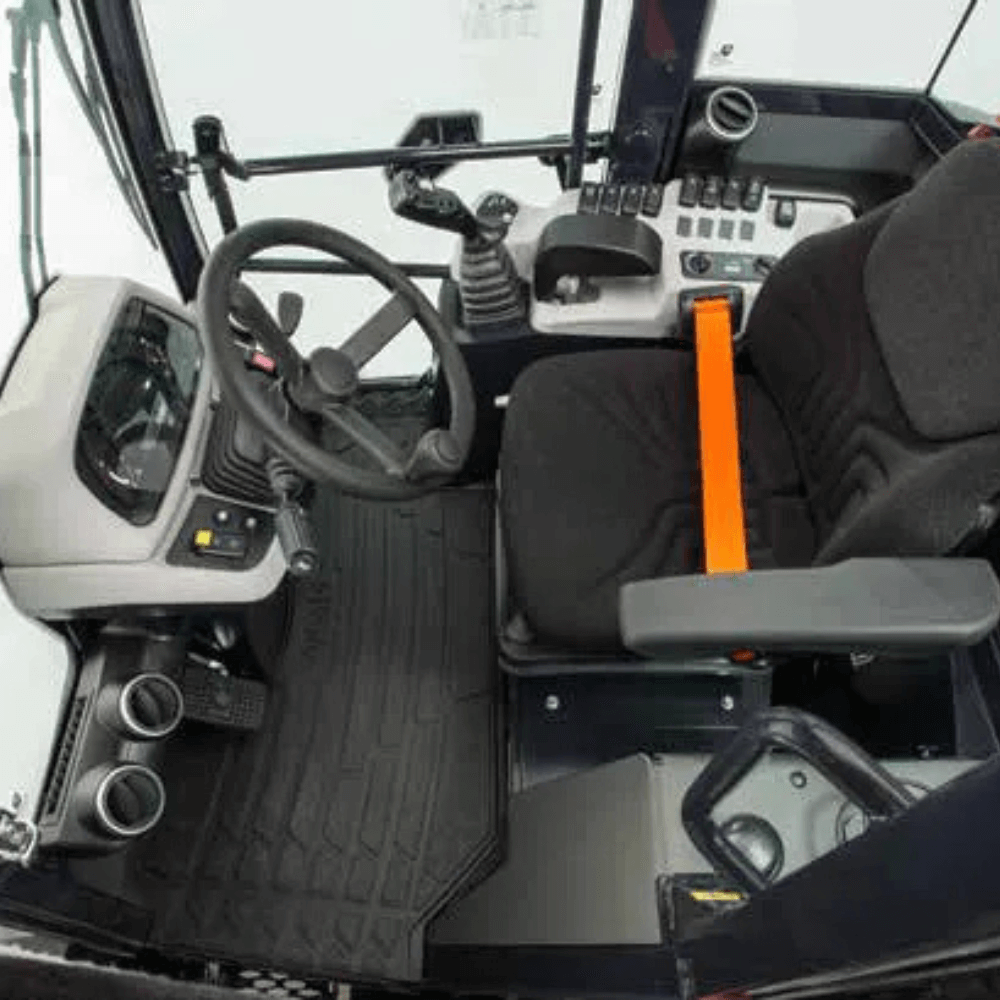 Nowoczesna kabina z panoramicznym widokiem i cyfrowym wyświetlaczem zapewnia pełną kontrolę nad maszyną.