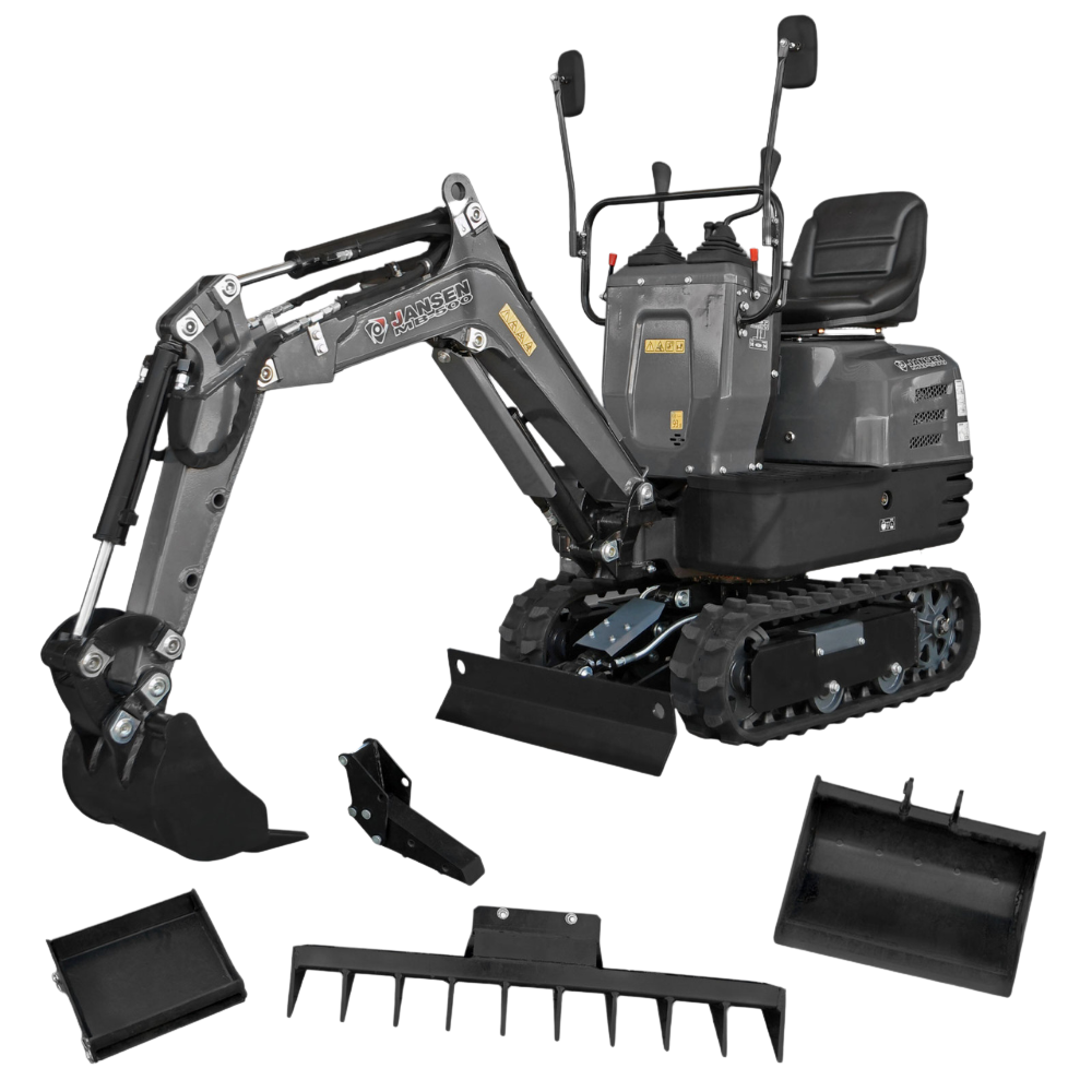 Mikrokoparka JANSEN MB-500 – kompaktowa i mocna maszyna do precyzyjnych prac ziemnych. Silnik 8,5 KM, obrót 360° i szerokość 70 cm umożliwiają pracę w trudno dostępnych miejscach. W zestawie łyżki 30 i 50 cm, chwytak, grabie i lemiesz hydrauliczny. Idealna do ogrodu, na budowę i przy instalacjach.