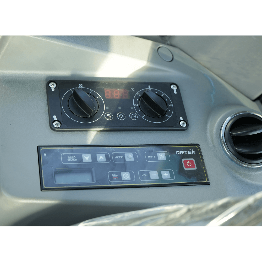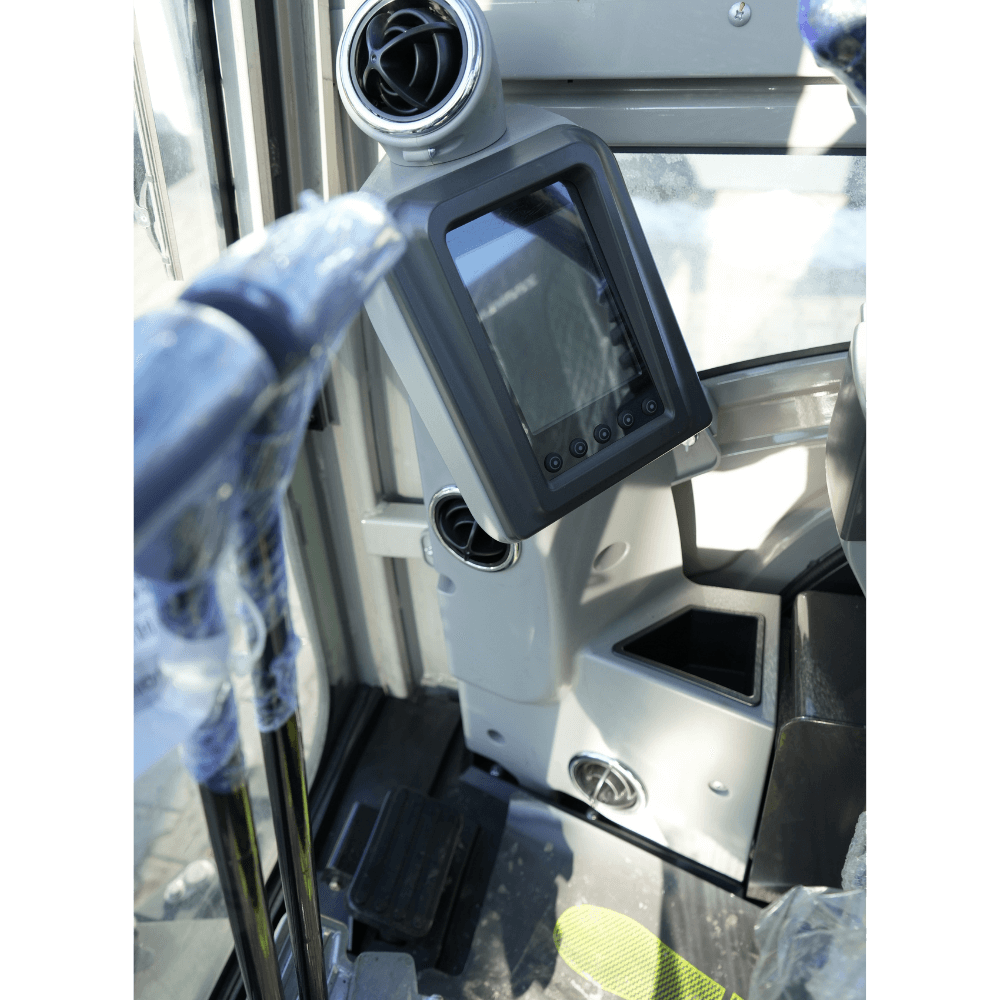 Model wyróżnia się m.in. rozsuwanym podwoziem (980–1300 mm), klimatyzowaną kabiną ROPS/FOPS, intuicyjnym sterowaniem i amortyzowanym fotelem.