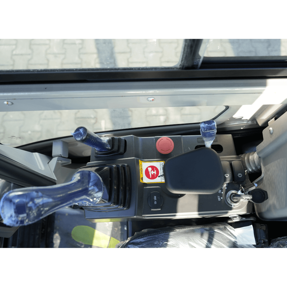 Wyposażenie opcjonalne (za dopłatą) : - Gąsienice stalowe 230 mm lub gumowe bloki wymienne,- Barierka ochronna kabiny, - Łyżki 300 mm, 900 mm, - Wiertnica: 300 mm, 450 mm, 600 mm, - Kciuk hydrauliczny, - Szybkozłącze hydrauliczne, - Zrywak, - Moduł GPS.