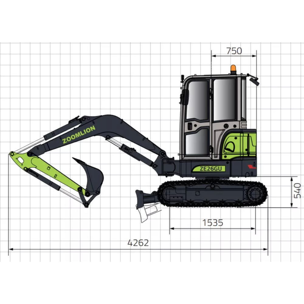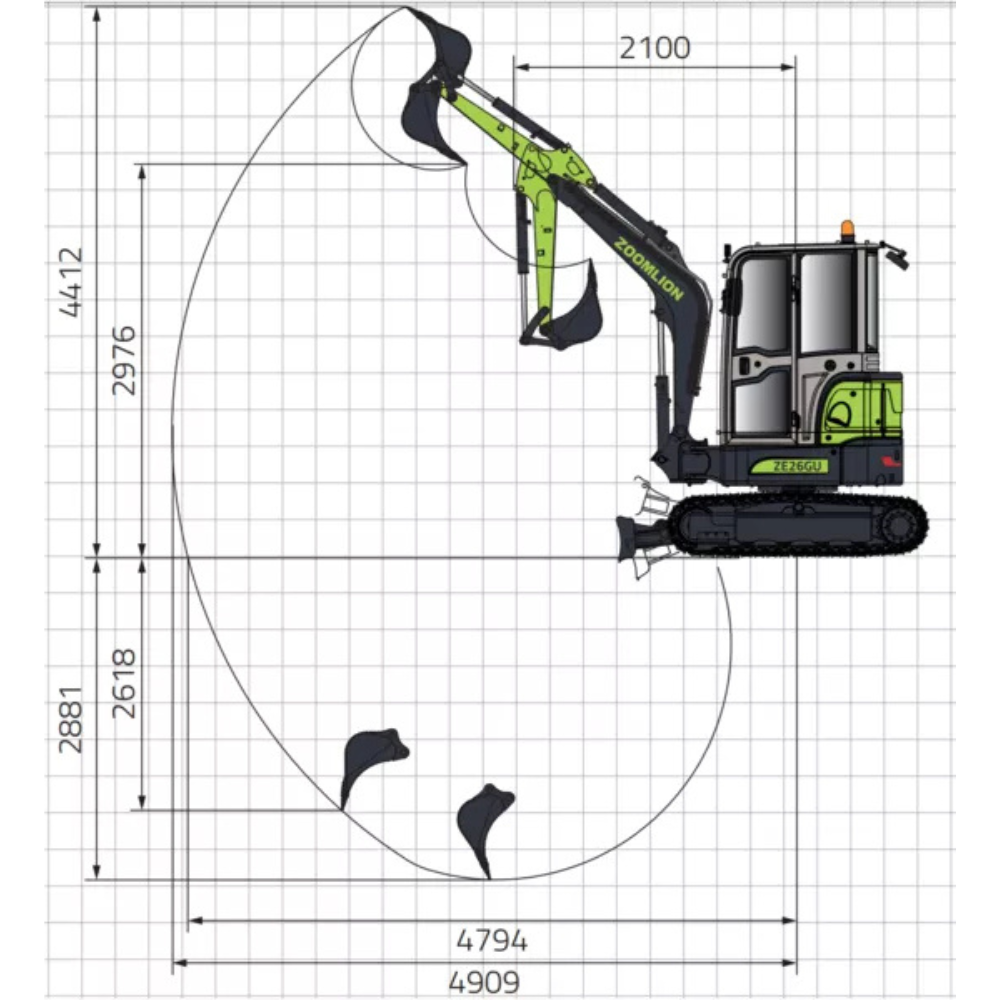 Minikoparka Zoomlion ZE26GU to kompaktowa i wydajna maszyna z niezawodnym silnikiem Kubota.