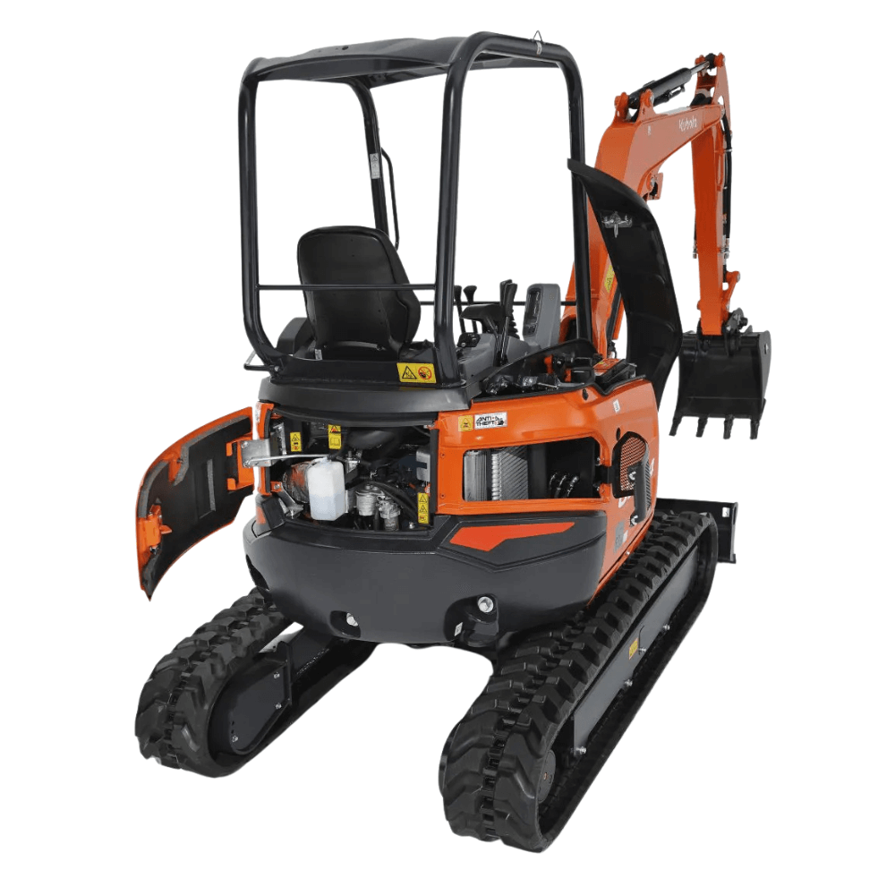 KUBOTA U27-4 to nowoczesna minikoparka o masie 2 590 kg, zaprojektowana z myślą o pracy w ograniczonej przestrzeni.