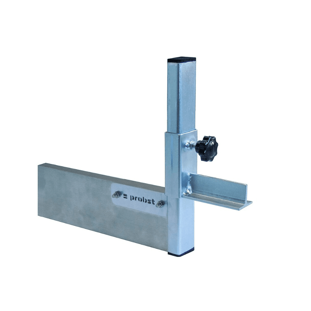 Regulacja wysokości: Podpora z regulacją wysokości może być ustawiona poprzez dokręcenie nakrętki motylkowej do odpowiedniej wysokości w kierunku krawężnika lub chodnika.