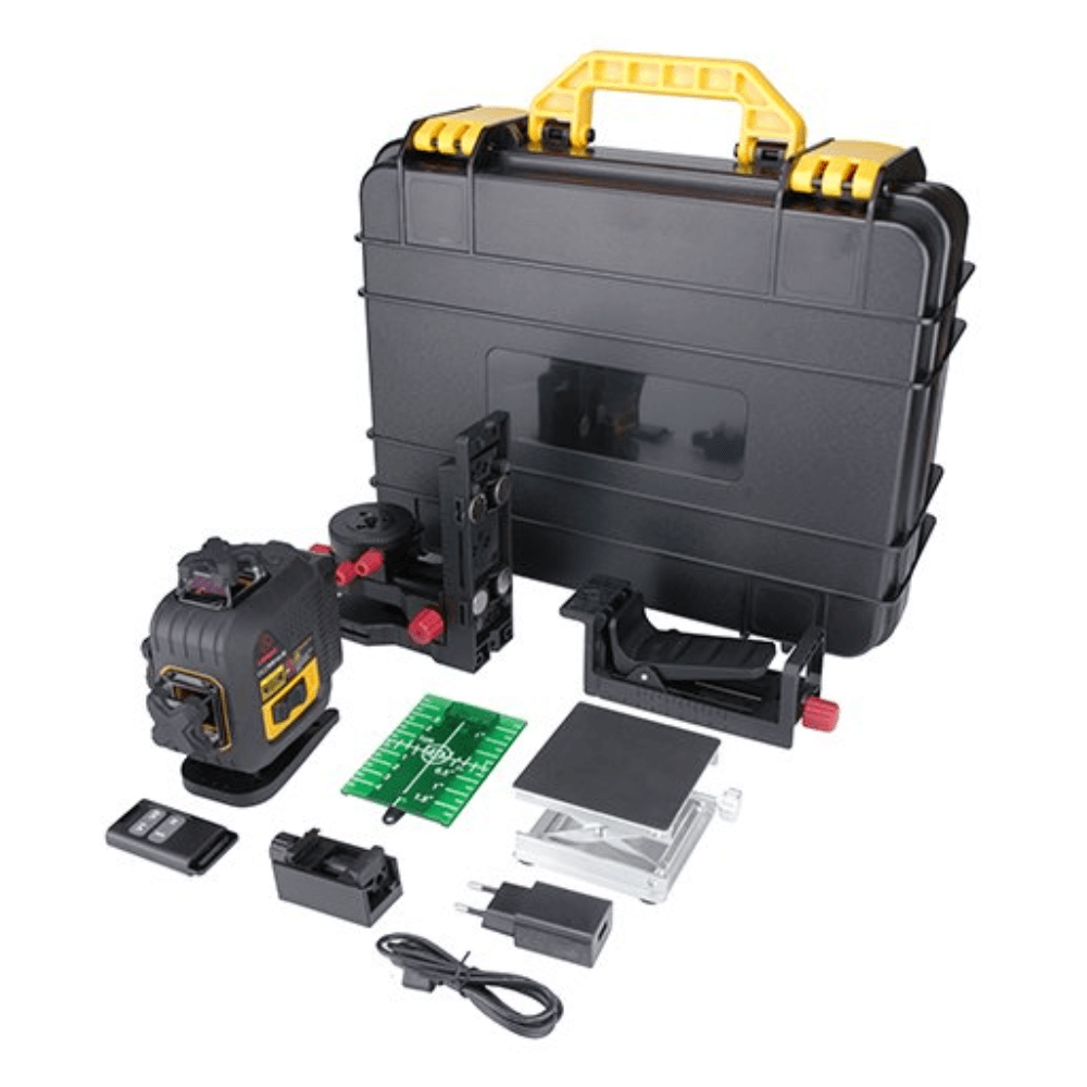 Samopoziomujący Laser liniowy CROSS 4D to precyzyjny laser liniowy 360° z zieloną wiązką do prac wykończeniowych i montażowych. Wyświetla pełną siatkę 4 linii i samoczynnie się poziomuje. Idealny do glazury, zabudów i instalacji.