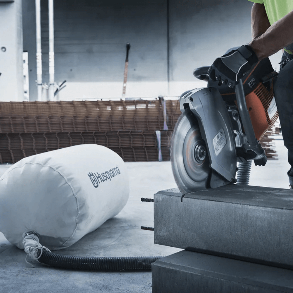 Husqvarna K 770 Dry Cut to lekka i mocna przecinarka do cięcia na sucho, wyposażona w silnik o mocy 3,7 kW oraz tarczę 300 mm. Dzięki unikalnej konstrukcji zapewnia imponującą głębokość cięcia – aż 122 mm, porównywalną z maszynami 14-calowymi. System skutecznego odprowadzania pyłu sprawia, że praca jest czysta i komfortowa, a specjalny worek z dyszą zapobiega jego wydostawaniu się na zewnątrz.