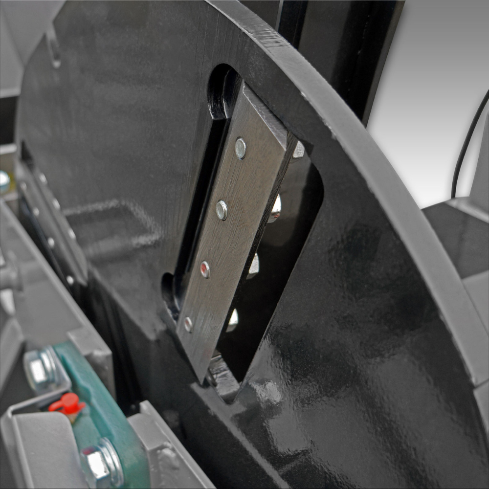Dzięki solidnej konstrukcji i czterem dwustronnym nożom, maszyna gwarantuje długą żywotność oraz minimalne wymagania konserwacyjne. Składany i obrotowy komin wylotowy ułatwia transport i pracę w każdych warunkach terenowych.