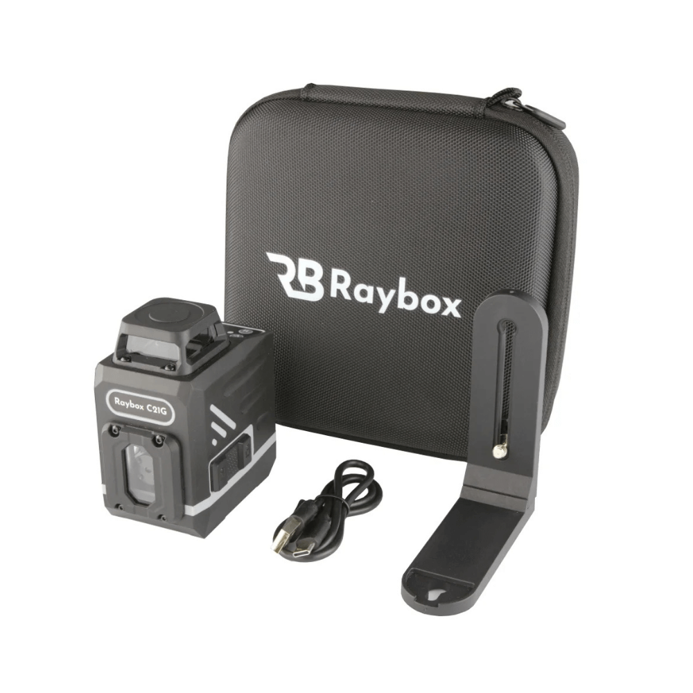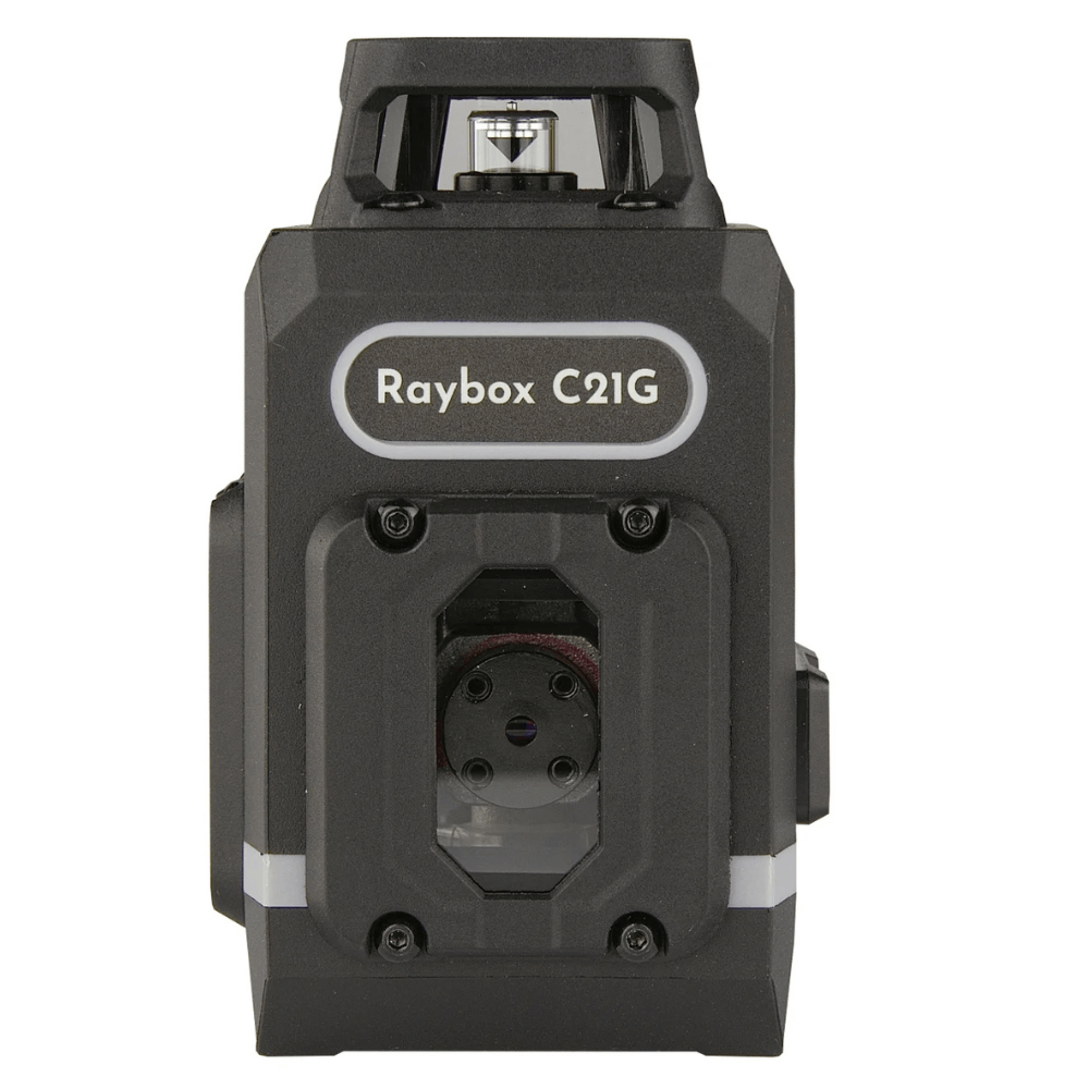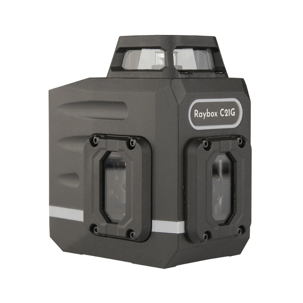 Samopoziomujący laser liniowy Raybox C21G to laser liniowy z poziomą płaszczyzną 360° i dwiema liniami pionowymi. Umożliwia precyzyjne wyznaczanie kątów prostych na ścianach. Sprawdzi się przy montażu mebli, okien i pracach wykończeniowych.