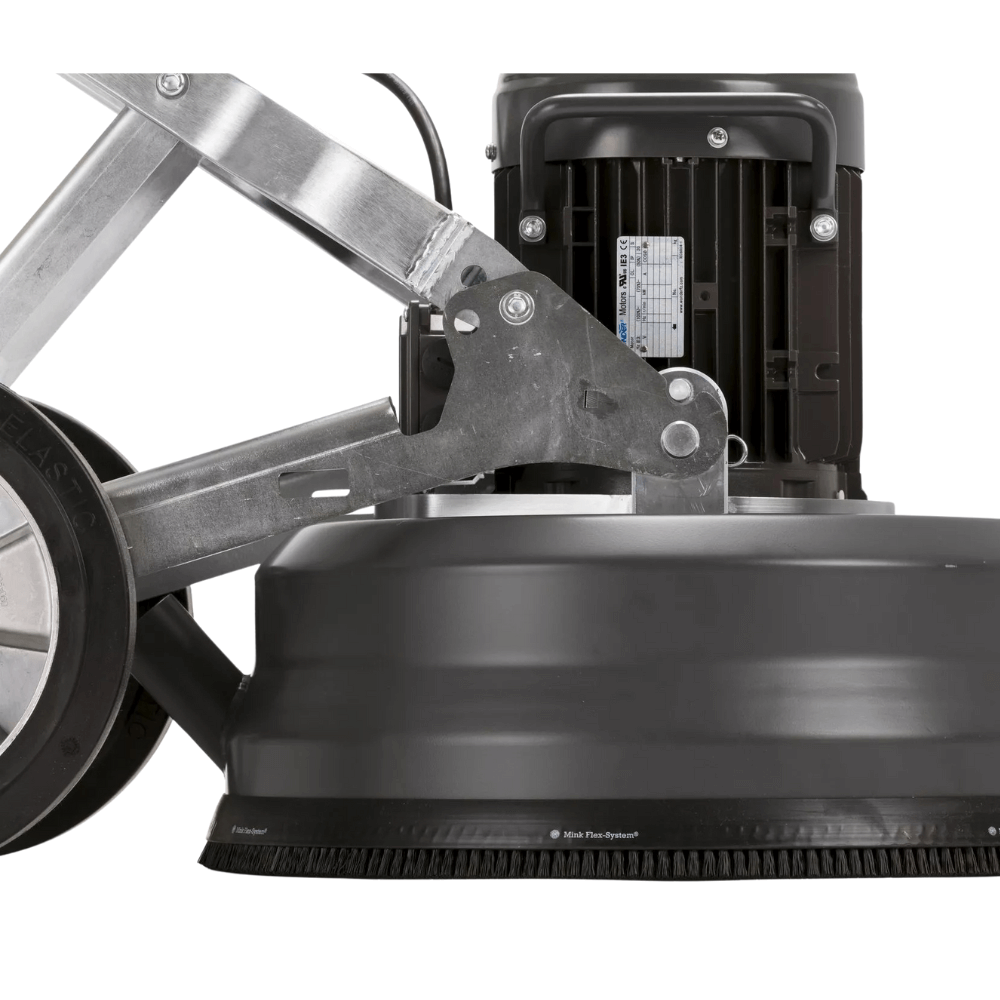- Dzięki mocy 4 kW i trzem tarczom szlifierskim o średnicy 230 mm, maszyna gwarantuje doskonałe efekty przy minimalnym nakładzie pracy.