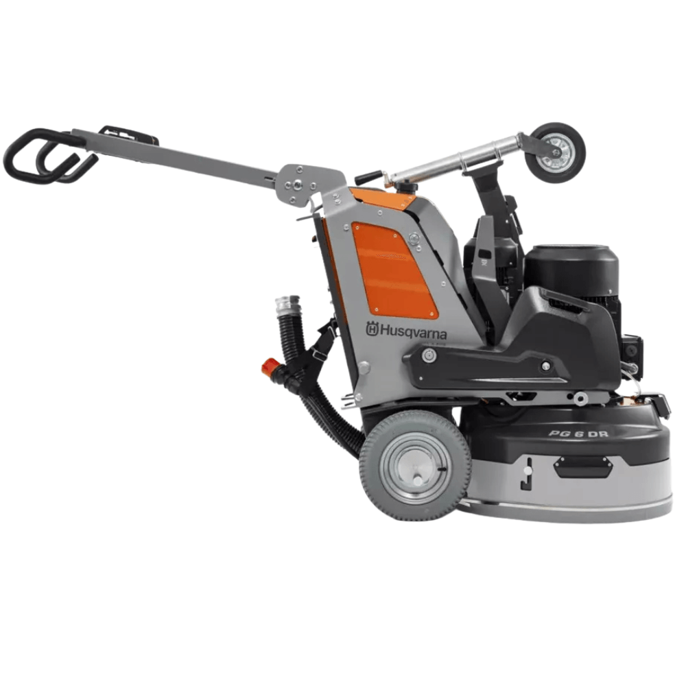 Szlifierka podłogowa Husqvarna PG 6 DR to zdalnie sterowana maszyna planetarna z mocnym silnikiem 12,5 kW, stworzona do profesjonalnych prac przy obróbce betonu i kamienia.