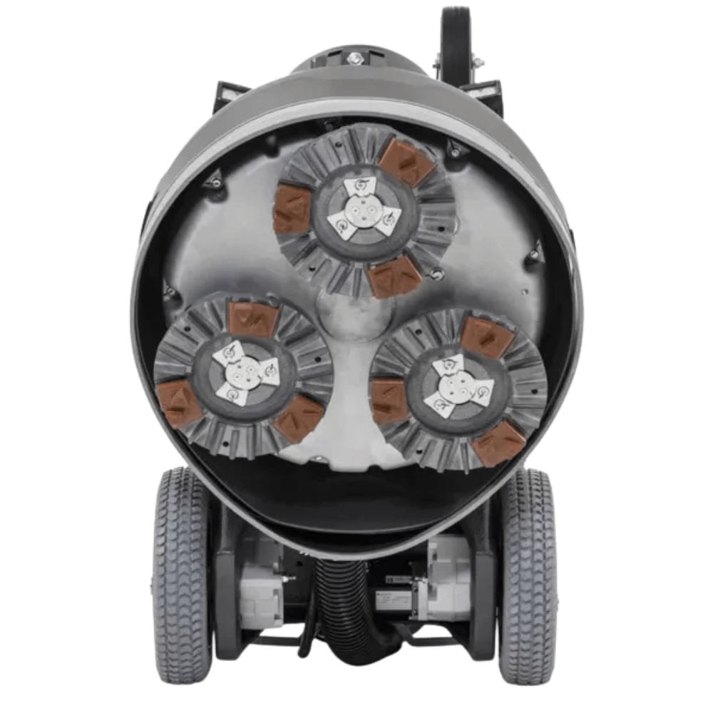 Husqvarna PG 6 DR to nowoczesna szlifierka podłogowa dla profesjonalistów, którzy oczekują maksymalnej wydajności i kontroli. Dzięki technologii Dual Drive możliwa jest niezależna regulacja prędkości i kierunku obrotu tarcz oraz bębna, co pozwala dopasować parametry do każdego rodzaju posadzki. System Mist Cooler efektywnie chłodzi narzędzia diamentowe, zwiększając tempo pracy i wydłużając ich żywotność. Hermetyczna głowica i skrzynka elektryczna chronią wnętrze maszyny przed pyłem i wodą, ograniczając serwisowanie do minimum. Zdalne sterowanie z joystickiem i ekranem zapewnia pełną kontrolę, a wbudowana ładowarka dba o gotowość akumulatora. To niezawodne rozwiązanie do intensywnego szlifowania i polerowania betonowych nawierzchni.