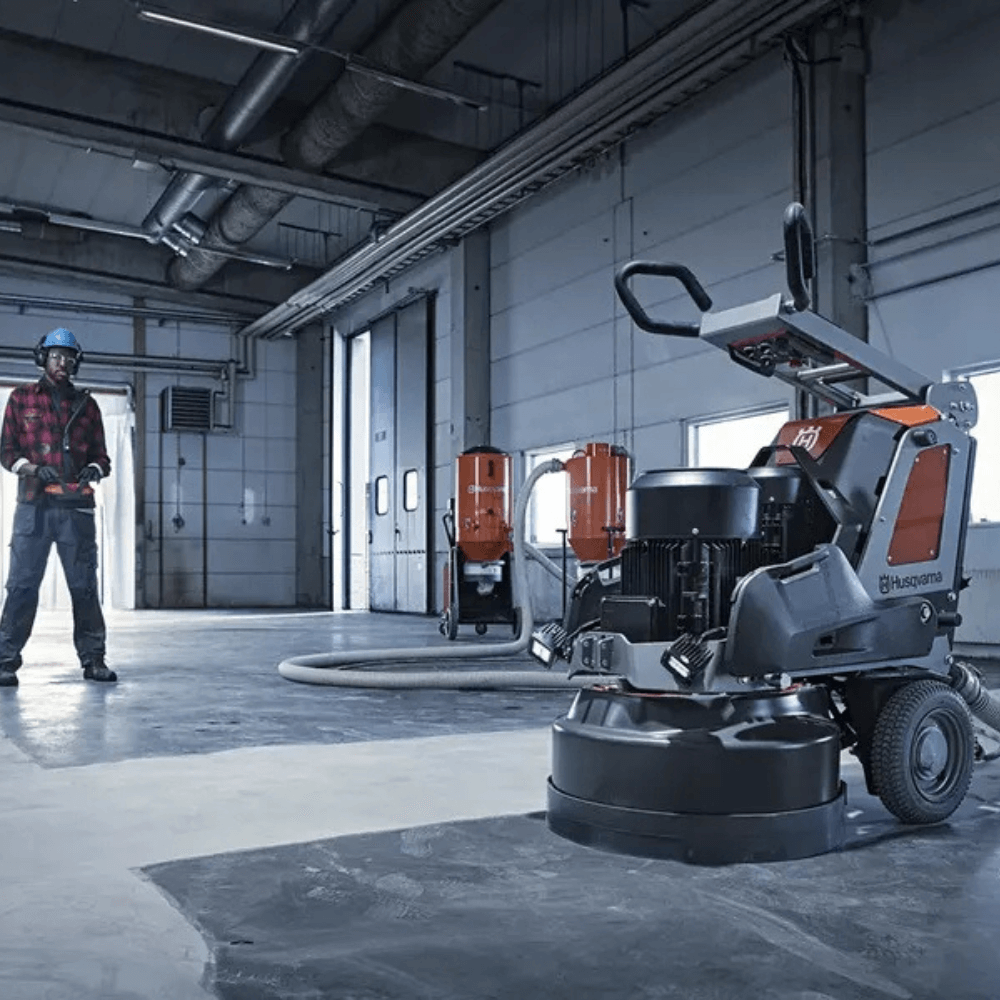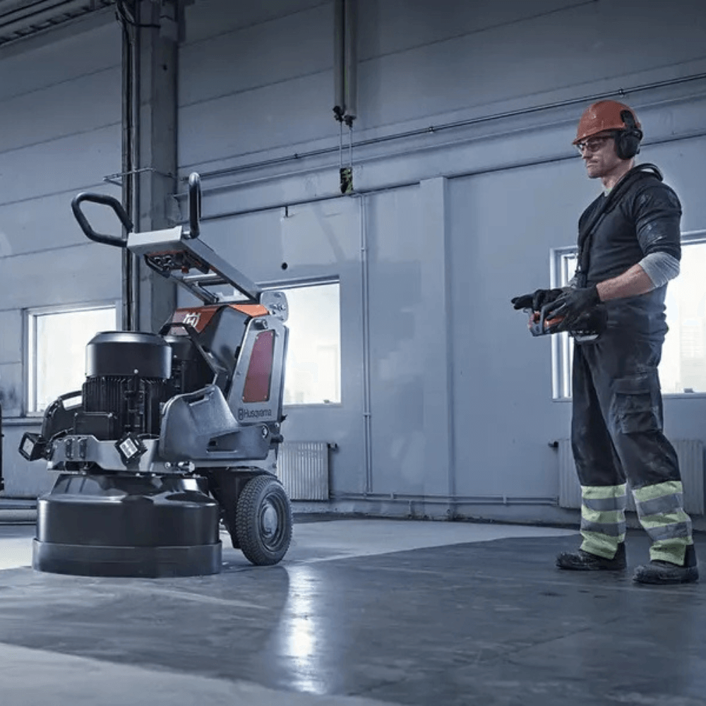 Husqvarna PG 690 RC to zdalnie sterowana, planetarna szlifierka podłogowa o mocy 12,5 kW, przeznaczona do dużych powierzchni betonowych.