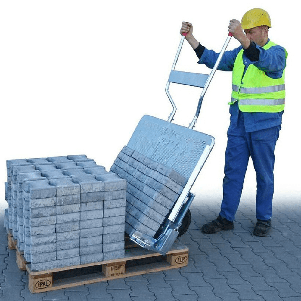 - W pełni mechaniczny wózek do pionowego transportu kostki brukowej i materiałów na placu budowy.