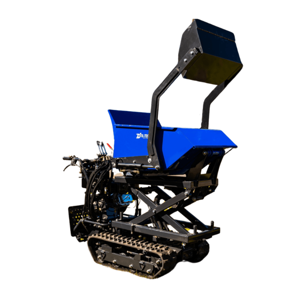 Wozidło gąsienicowe ZTE MDK501HKSSH o ładowności 500 kg to solidna maszyna do transportu materiałów na budowie i w ogrodnictwie. Wyposażone w hydrauliczną wywrotkę wysokiego wysypu oraz łyżkę samozaładowczą znacząco przyspiesza pracę. Mocny silnik 10 KM i napęd gąsienicowy pozwalają pracować w trudnym terenie.