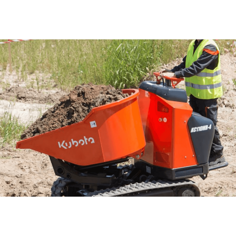 Wozidło gąsienicowe KUBOTA KC110HR-4 to mocna, kompaktowa i niezawodna maszyna o ładowności do 1000 kg. Wyposażona w silnik wysokoprężny KUBOTA D722 zapewnia dużą moc, niskie zużycie paliwa i cichą pracę. Idealna do pracy w trudnych warunkach terenowych oraz w ciasnych przestrzeniach.