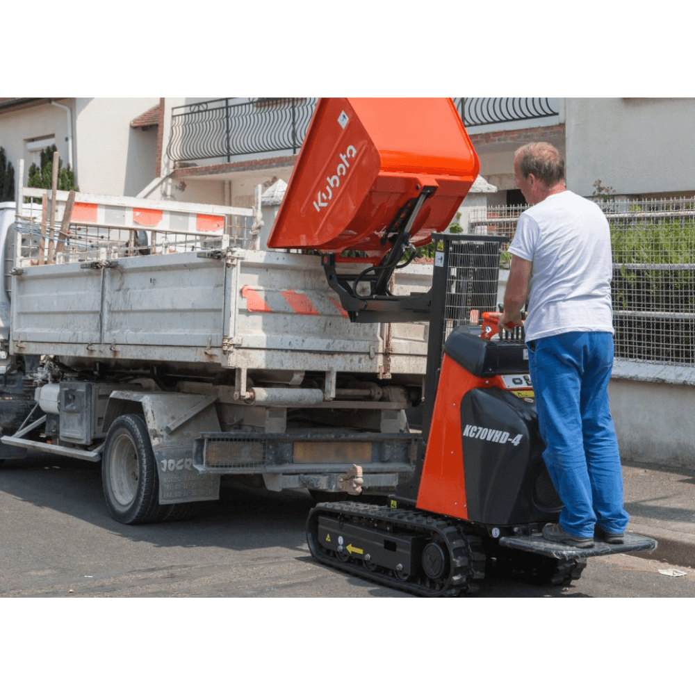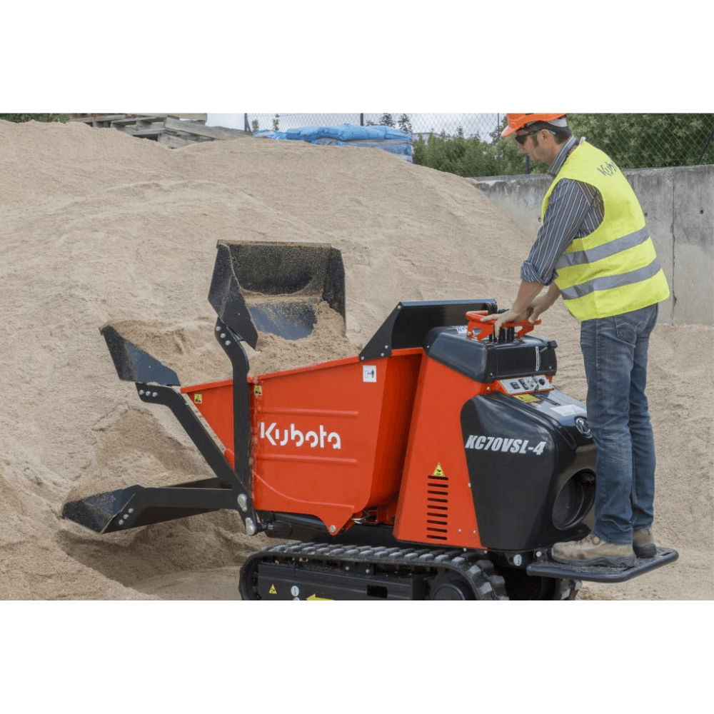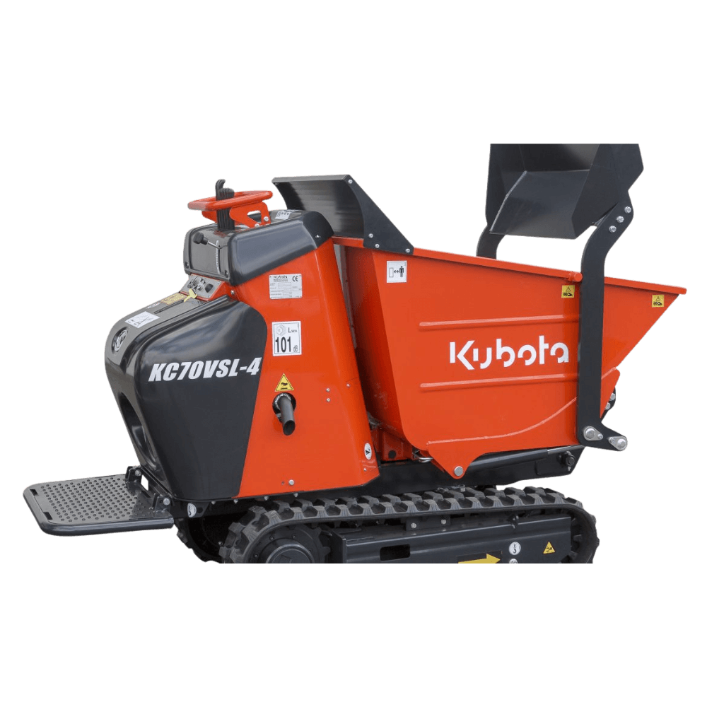 Wozidło gąsienicowe KUBOTA KC70-4 to kompaktowa, mocna i wielofunkcyjna maszyna dostępna w pięciu wersjach. Wyposażone w silnik KUBOTA OC95 o mocy 9,4 KM zapewnia wysoką wydajność i niezawodność w każdych warunkach. Idealne rozwiązanie dla firm budowlanych ceniących efektywność, oszczędność i komfort pracy.