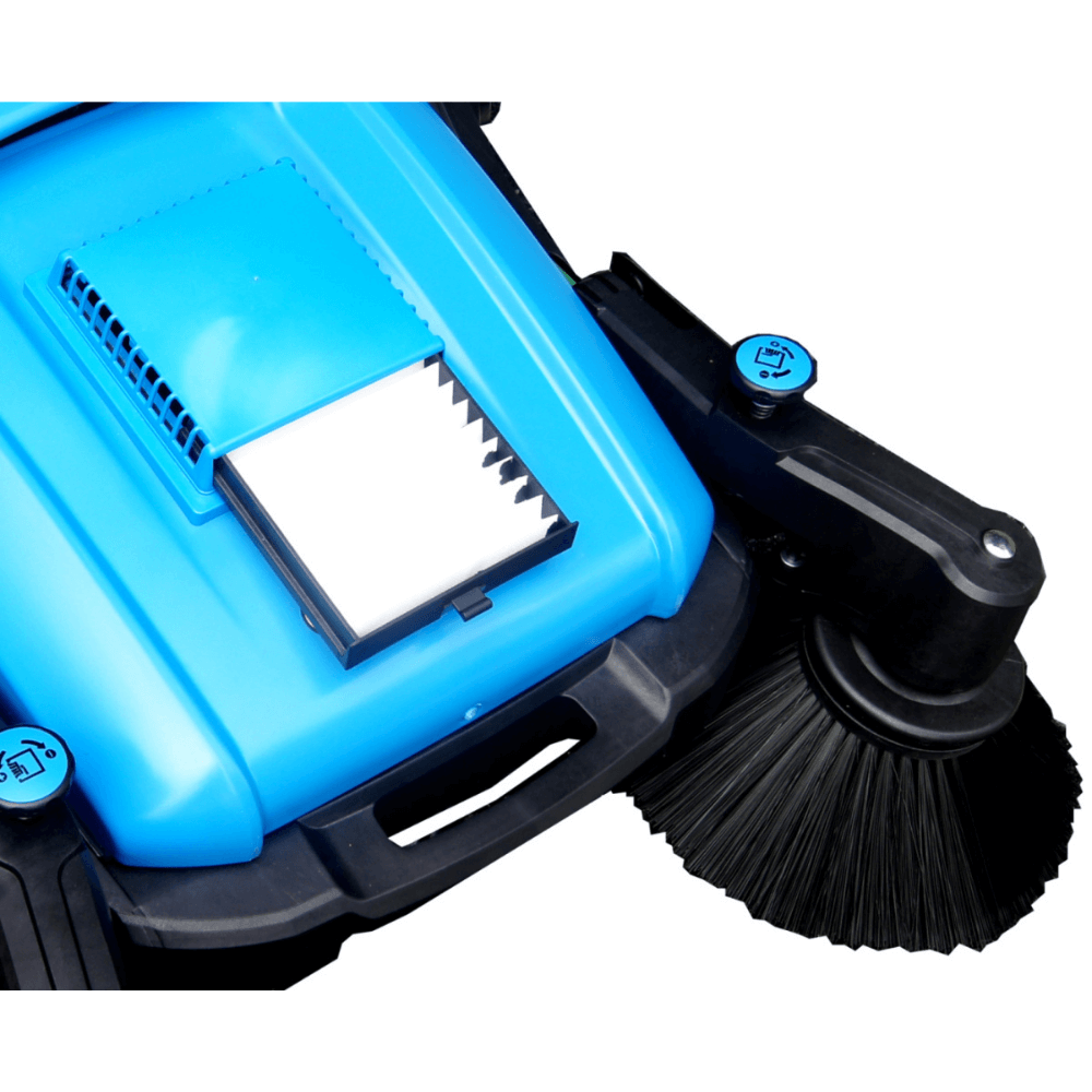 Manualny napęd szczotek, szerokość robocza 92 cm i filtr przeciwpyłowy zapewniają skuteczne czyszczenie bez kurzu.