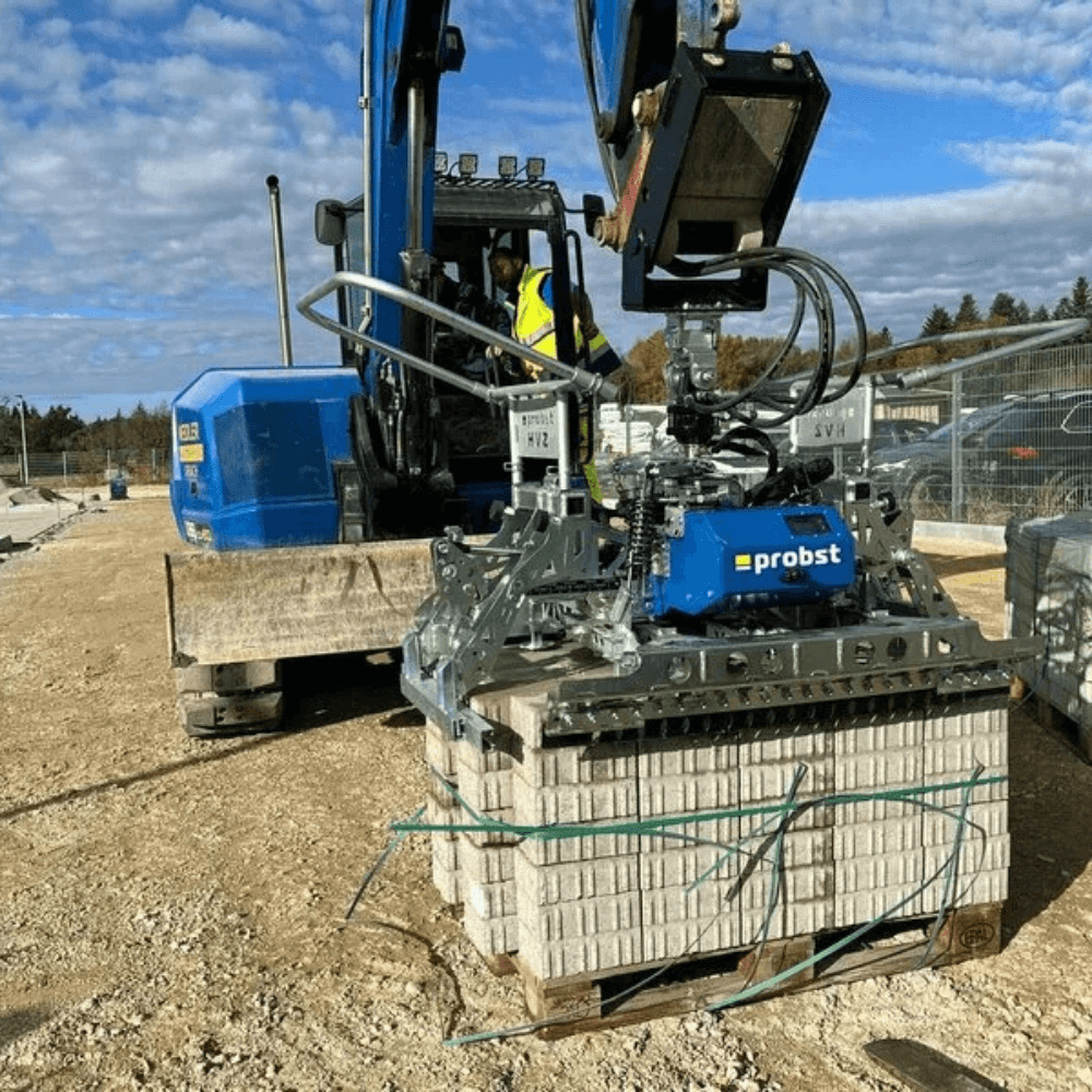 Zawieszany chwytak Probst HVZ-PAVERTRON to profesjonalne rozwiązanie do szybkiego układania kostki brukowej przy użyciu koparki od 2,5 t. Oferuje wydajność do 700 m² dziennie, inteligentne programy pracy oraz automatyczną kalibrację hydrauliki. To sprzęt dla firm brukarskich, które chcą zwiększyć tempo realizacji bez kompromisów w precyzji.